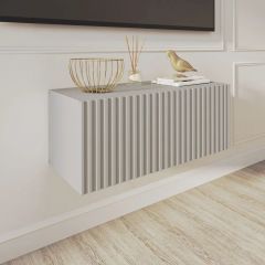 Благодаря своей компактности тумба под ТВ подвесная поможет сэкономить пространство, избежать ощущения загромождённости гостиной, спальни или детской комнаты, а рифлёный фасад будет акцентировать